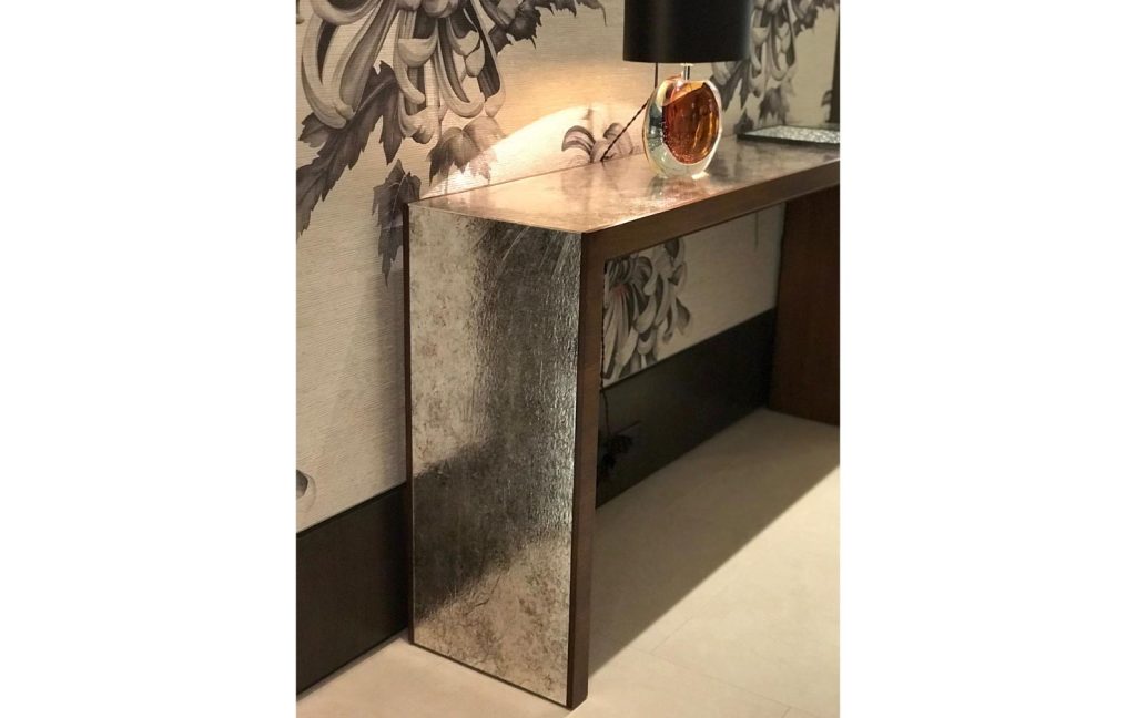 Shown in Satin Walnut, Waterfall Mirror